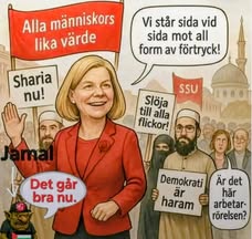 Det säger faktiskt allt om vad Socialdemokraterna är, ett ryggradslöst vindflöjelparti som saknar fasta värderingar. De spelar radikala feminister när de vill plocka poäng i storstadsmedier, men de har inga problem med att krypa för religiösa förtryckare om det gynnar makten eller exportavtalen. Det är ett poserande utan dess like, där principerna alltid säljs ut till högstbjudande. En dag är de ”hens”, nästa dag är de underdåniga slöjbärare, allt beror på vilken publik de för tillfället försöker lura.