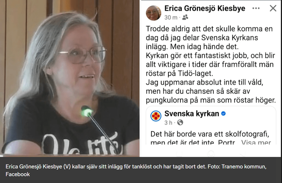 Föreställ er det totala mediala krigstillståndet, fackeltågen och de extrainsatta nyhetssändningarna om en högerpolitiker hade uppmanat till att fysiskt stympa sossar eller vänsterkvinnor. Landet hade stannat. Men när Vänsterpartiet gör det? Då är det bara lite ”otur i tanken” från det goda laget.